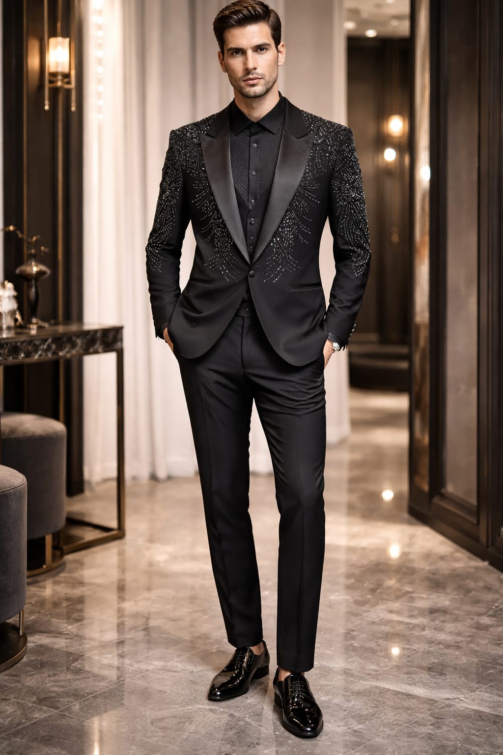 Obsidian Royale Embellished Tuxedo Set