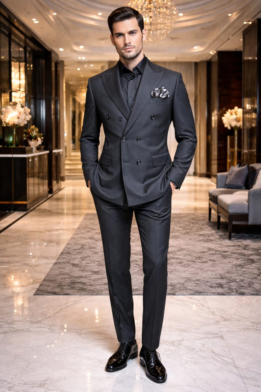 Charcoal Double-Breasted Tuxedo Set