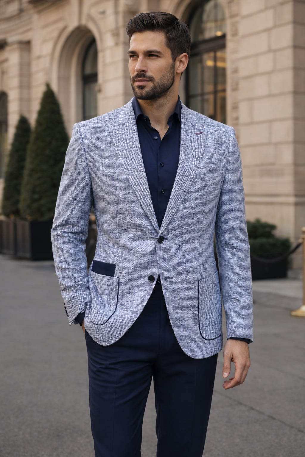 A refined blazer-style jacket with a textured finish