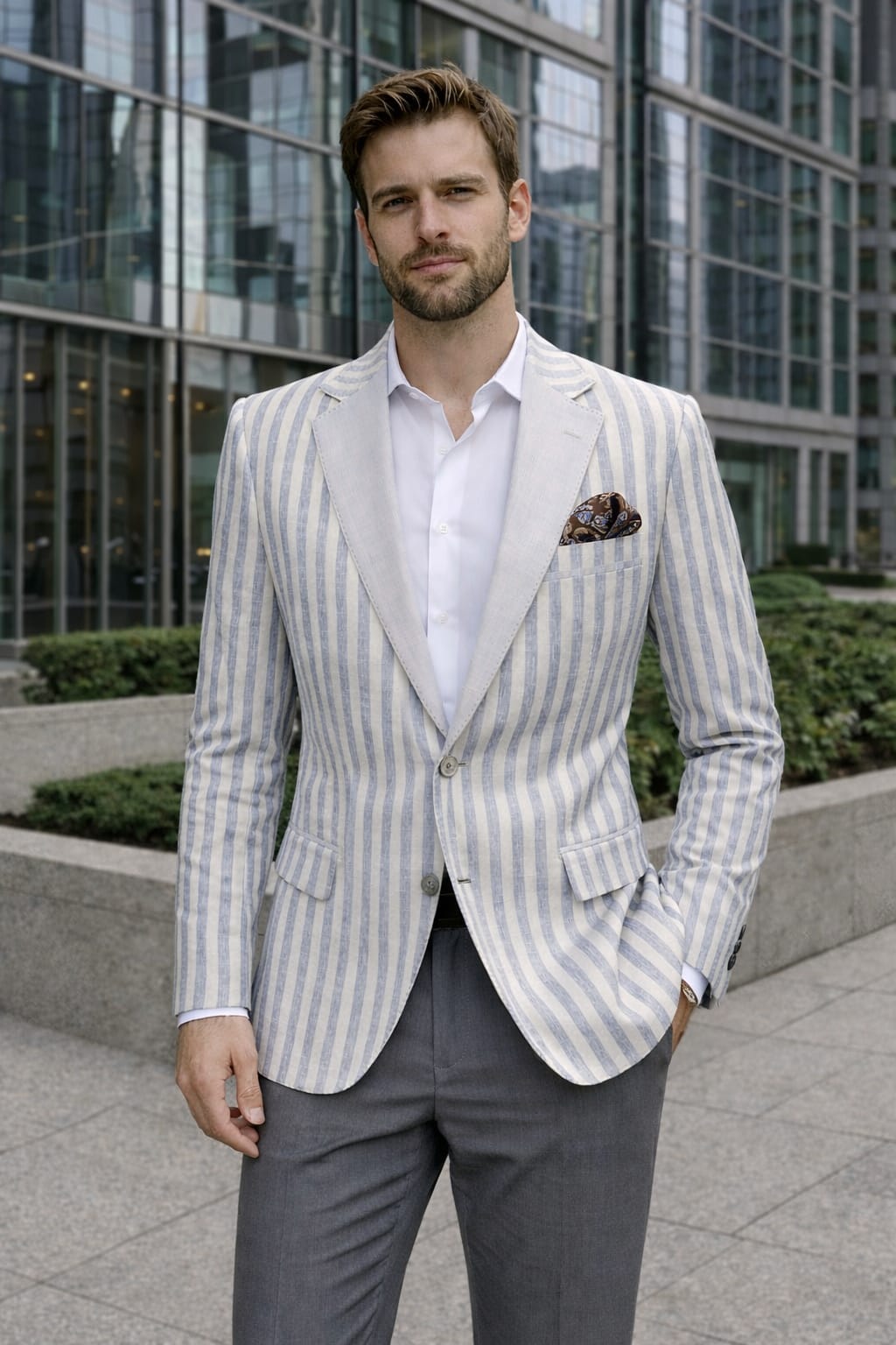Beige Pinstripe Tailored Blazer Jacket