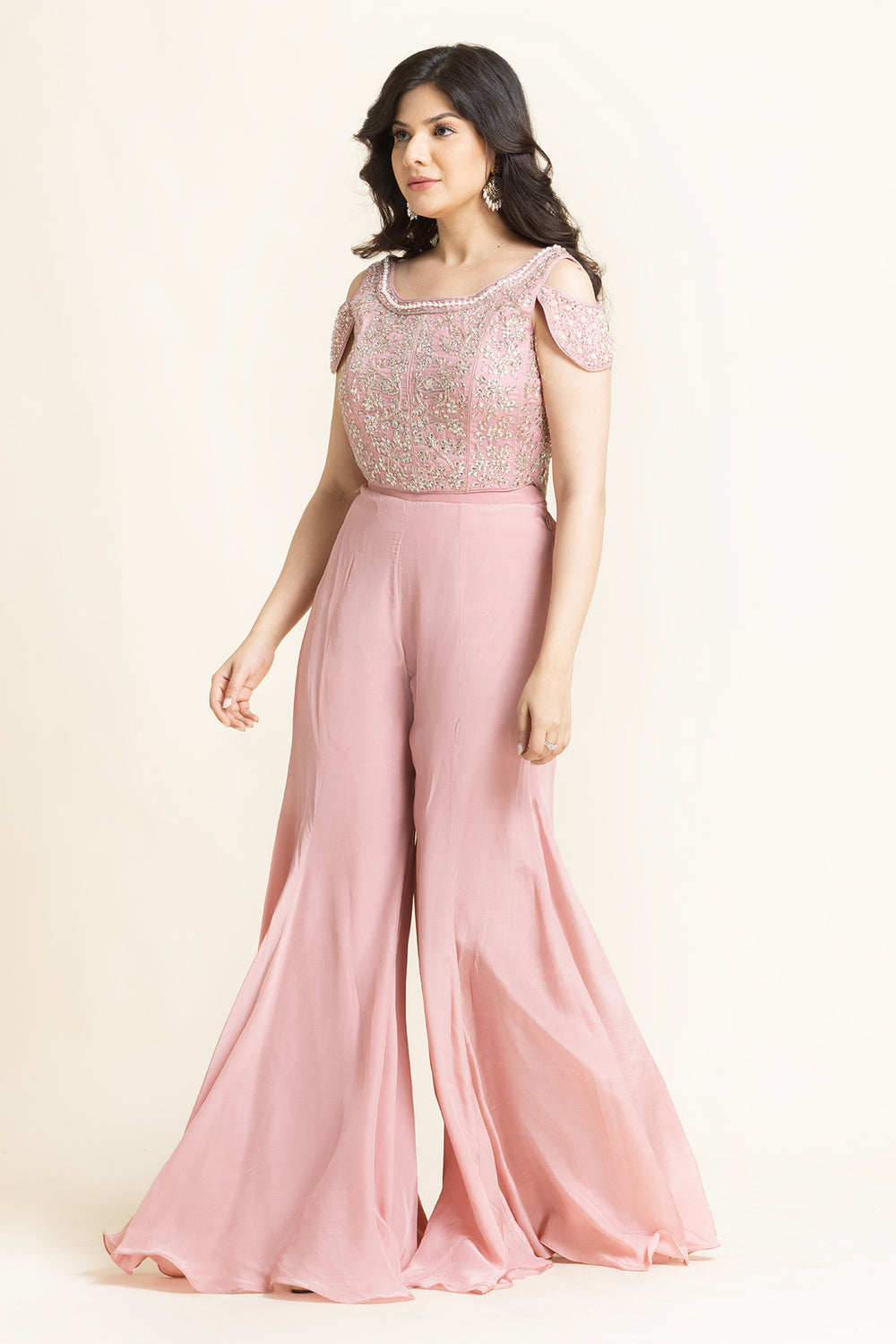 Pink Dabka Pearl And Swarovski Embroidered Indo-Western
